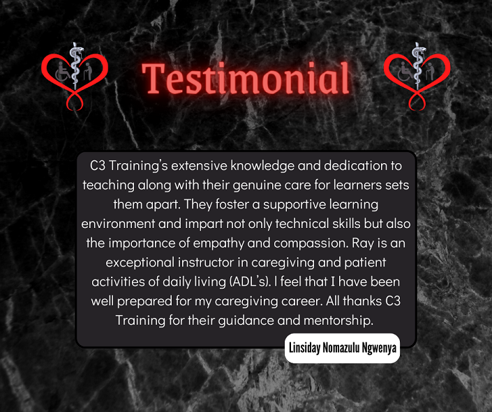 C³ works tirelessly to help our learners obtain the knowledge, skills and competence needed for them to achieve their life goals. We then strive to place our learner alumni with the patients who need their assistance.
